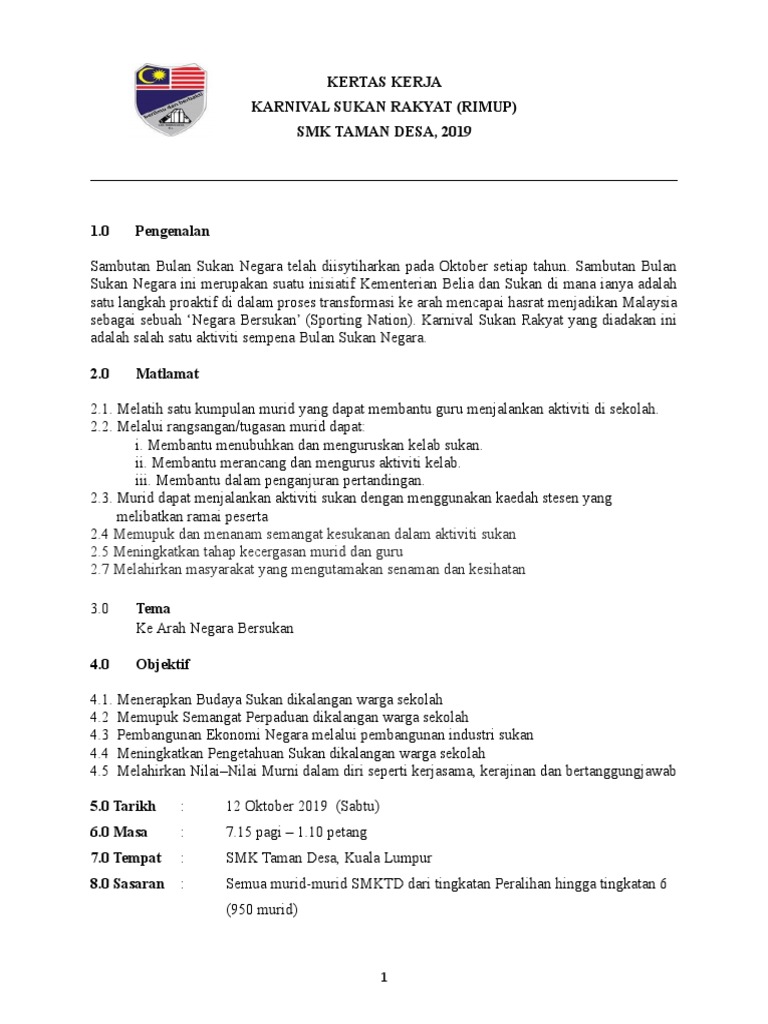 Kertas Kerja Karnival Sukan 1m1s 2015 Doc Document from cdn.vdokumen.net Kertas kerja hari sukan tahunan skbj 2017. Memupuk budaya bersukan dan semangat cintakan sukan tradisi. Kertas kerja karnival permainan tradisional institut pendidikan guru kampus darulaman 06000 jitra, kedah. You can create one as well, really easily.get started. (nama program) ( bahasa melayu sahaja ). Dengan adanya aktiviti sukan sebegini akan mencetuskan semangat kesukanan dan. Karnival mahasiswa ipt zon tengah 2014 karnival mahasiswa ipt zon tengah 2014 karnival mahasiswa ipt zon tengah. Sk lktp linggiu kota tinggi, johor jba 3048 kertas kerja karnival sukan & permainan sk lktp linggiu 2015 anjuran: